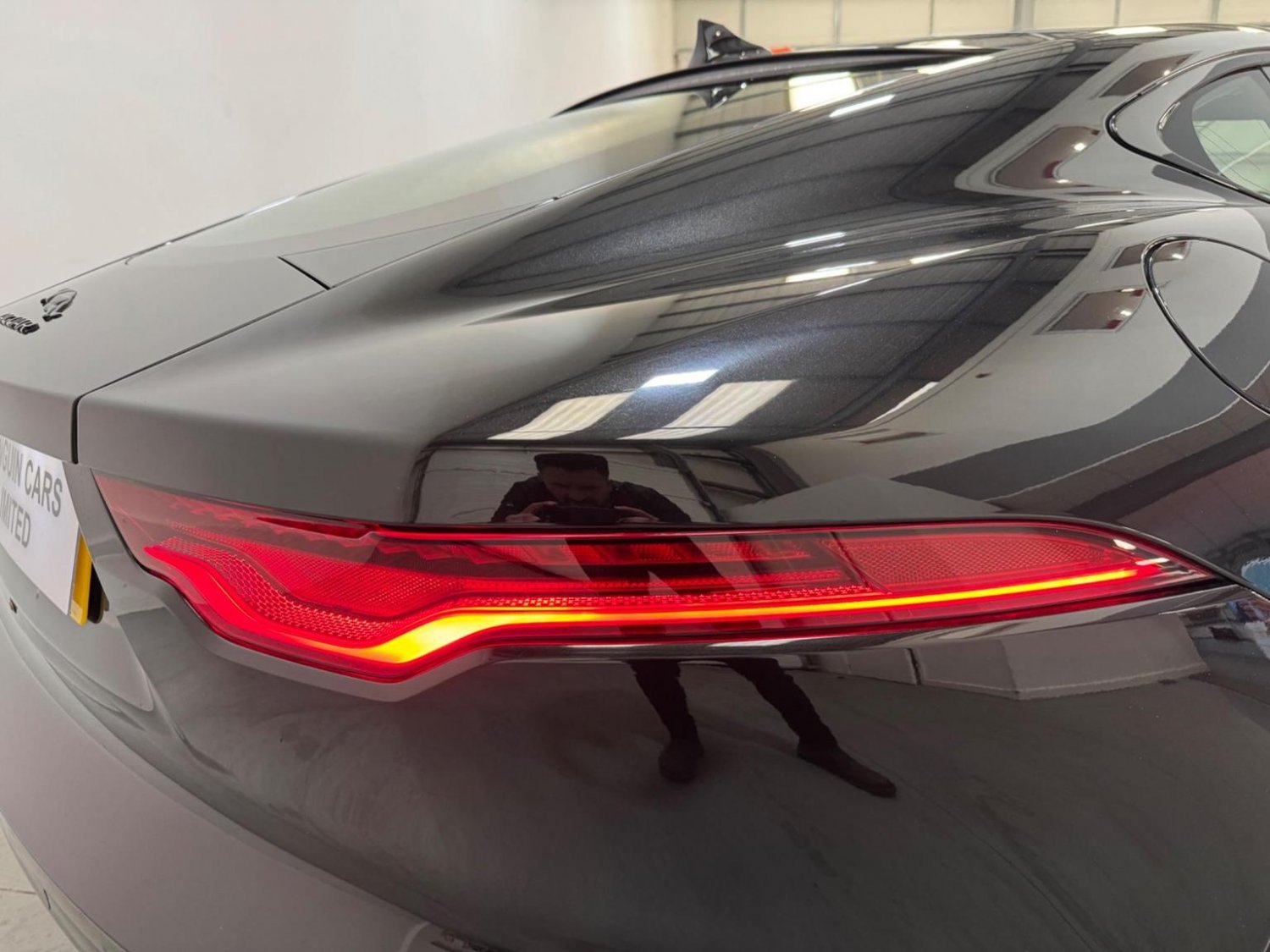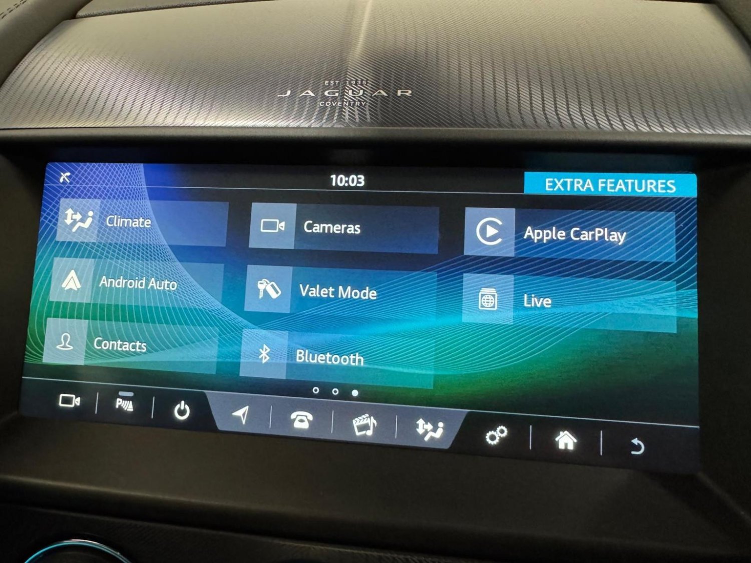 The Jaguar F-Type i R-Dynamic, registered in 2021, is a sleek car that combines performance with sophisticated design. This R-Dynamic trim features a responsive 2.0-litre petrol engine, making every drive an engaging experience. The fixed panoramic roof floods the interior with natural light, enhancing the sense of space and openness. Rolling on stylish 20-inch alloy wheels with a gloss black finish, this F-Type makes a bold statement on the road. The heated front windscreen ensures clear visibility in colder weather, adding a practical touch to this sporty vehicle.